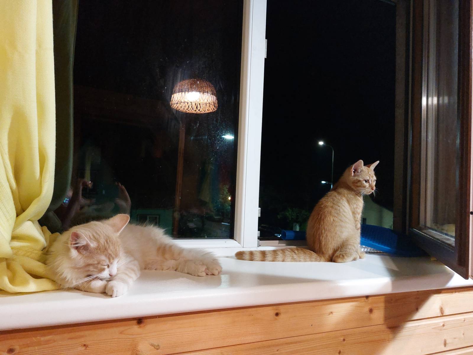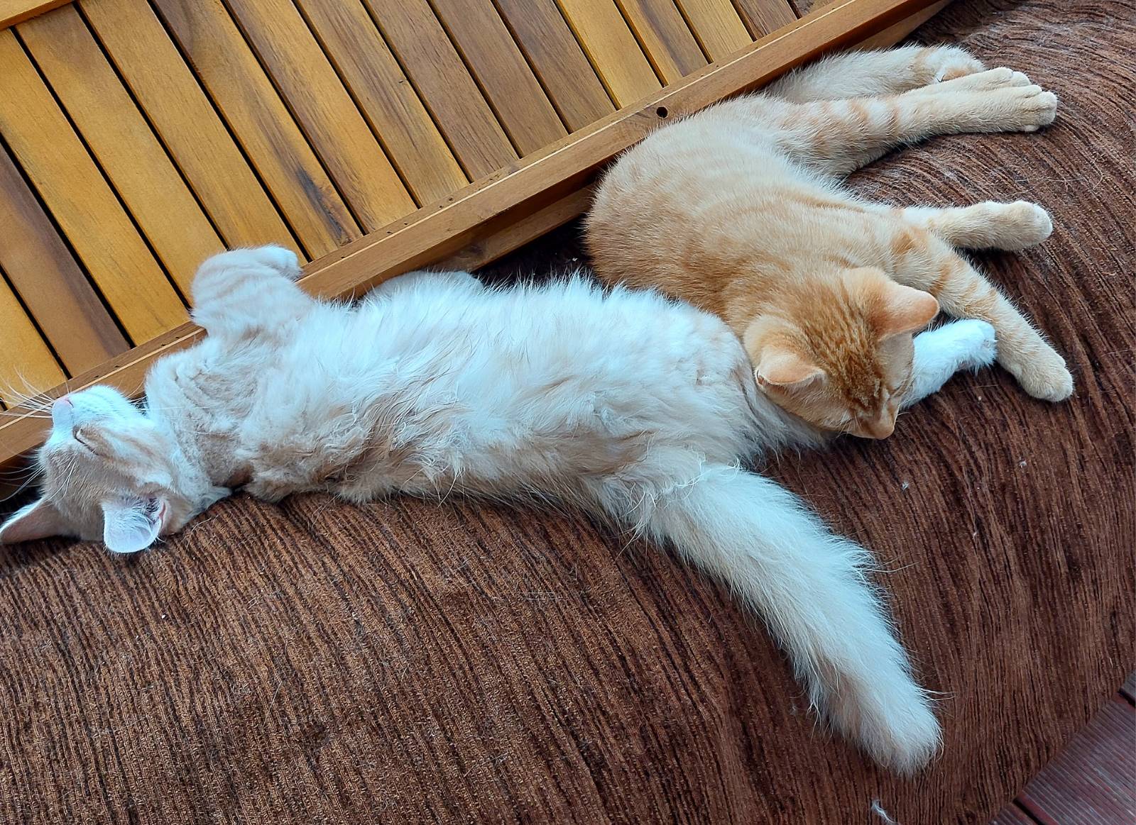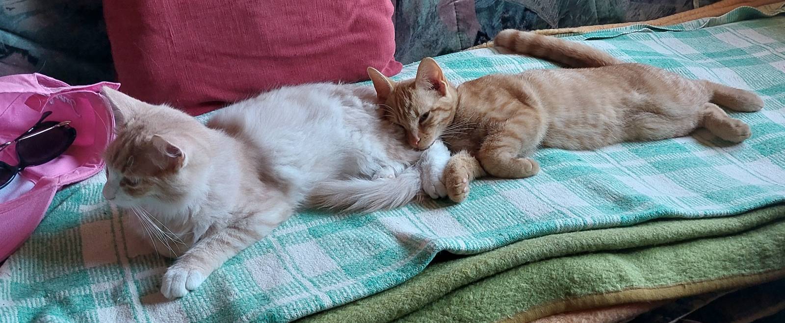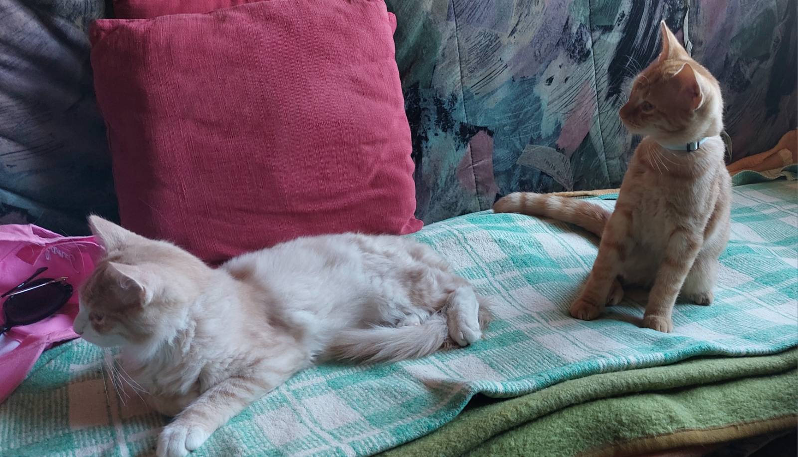 Tigri – cuddly jumper & Pljushka – fluffy lazy prima donna (watch his posing. RIP 😢)