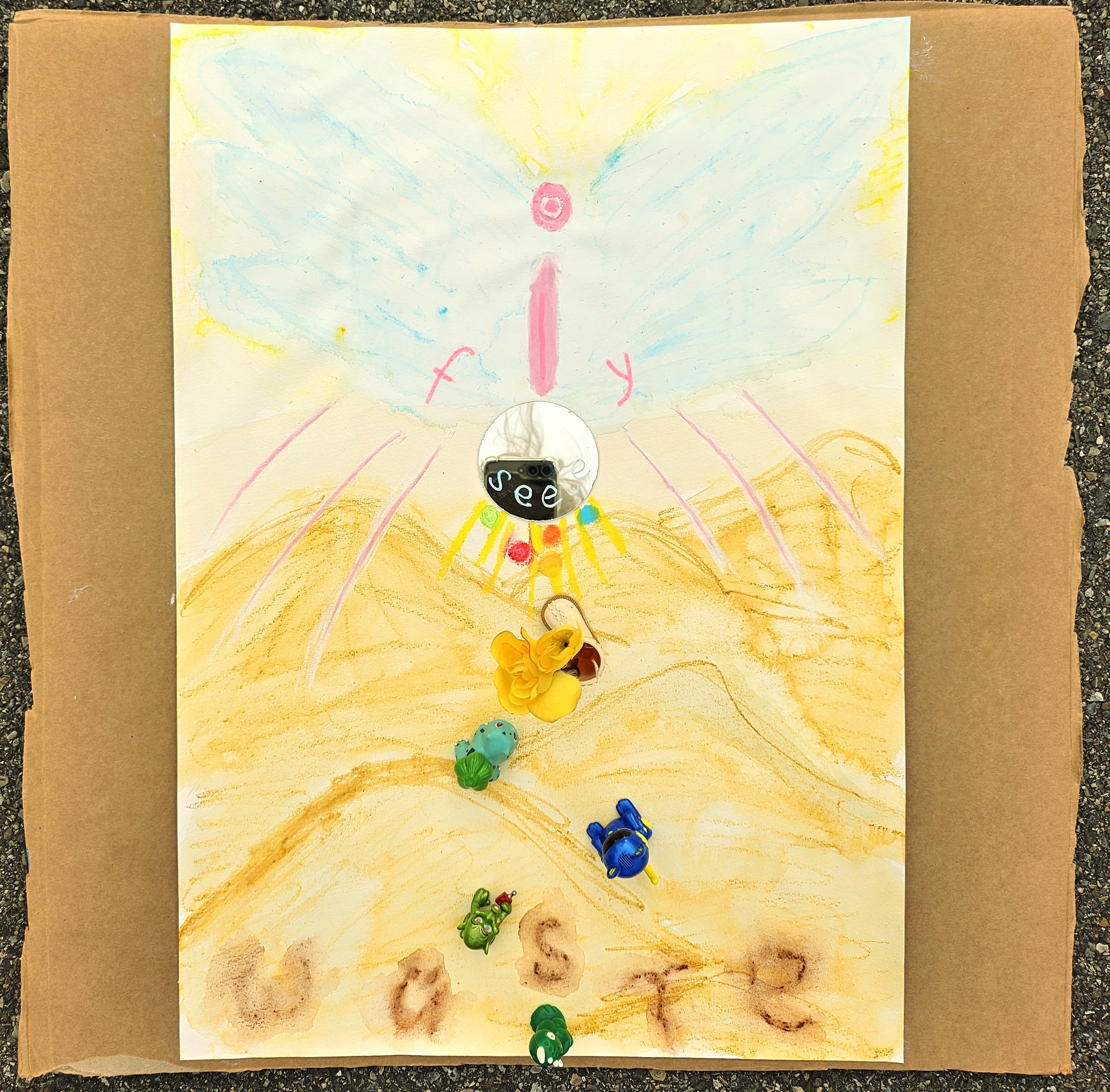 Because I needed ‘l’ , but it had to be in the middle. But I had “I” and ‘fly’ consists of three letters. And so I understood that I would do it that way. And the little figures, they are all me, on the road. And I leave the desert behind me, so to speak, in keeping with the theme, and go upwards. And I fly.